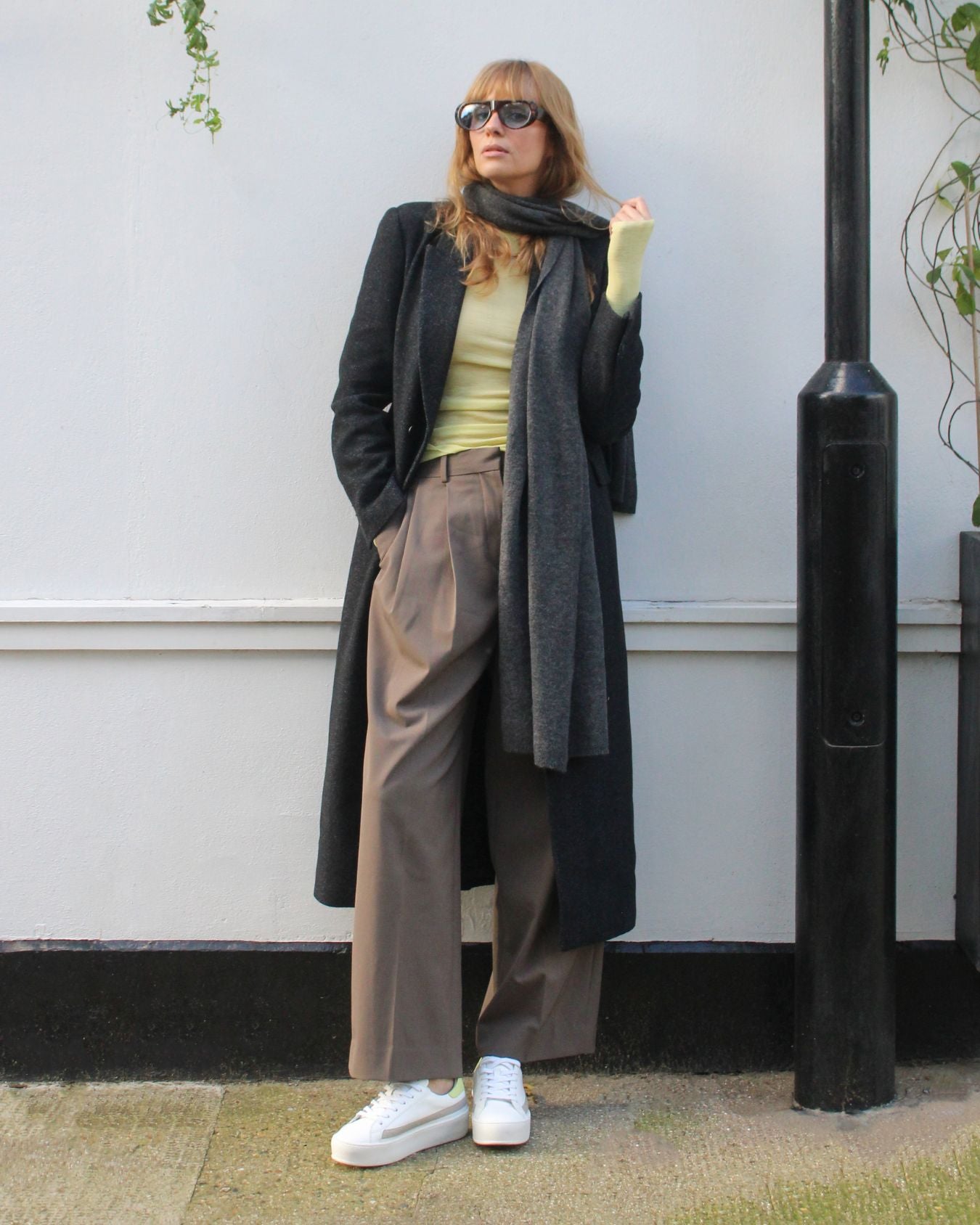 The Gaia White, Grey & Lime-Yellow is a modern platform trainer in premium white leather, with our signature embossed grey leather side stripe, lime-yellow pebbled leather heel panel and white natural rubber outsoles.